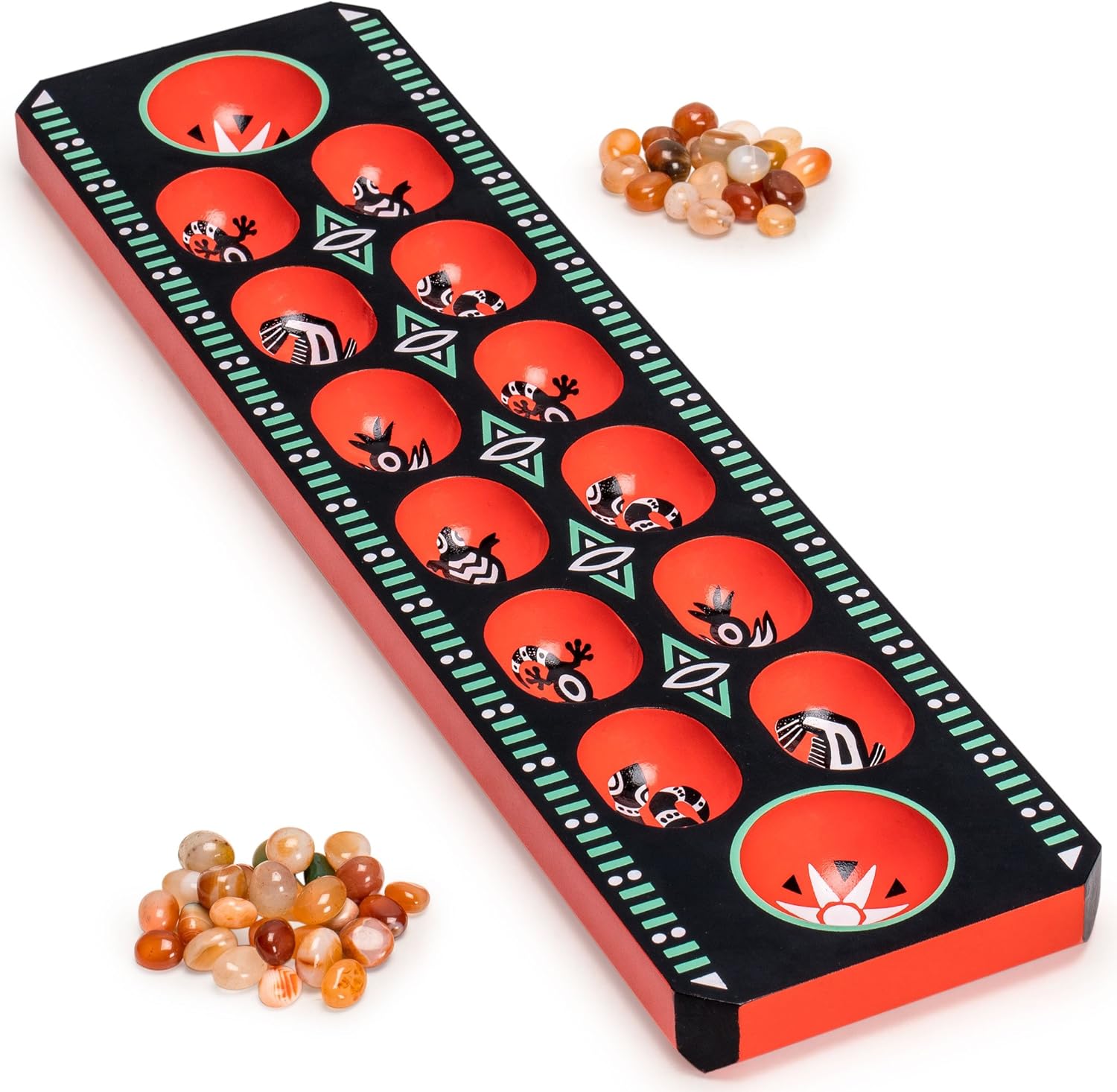 Amazon Com Yellow Mountain Imports Mancala Set With Wooden Board And Quartz Pebble Playing Pieces Lacquer Black Toys Games